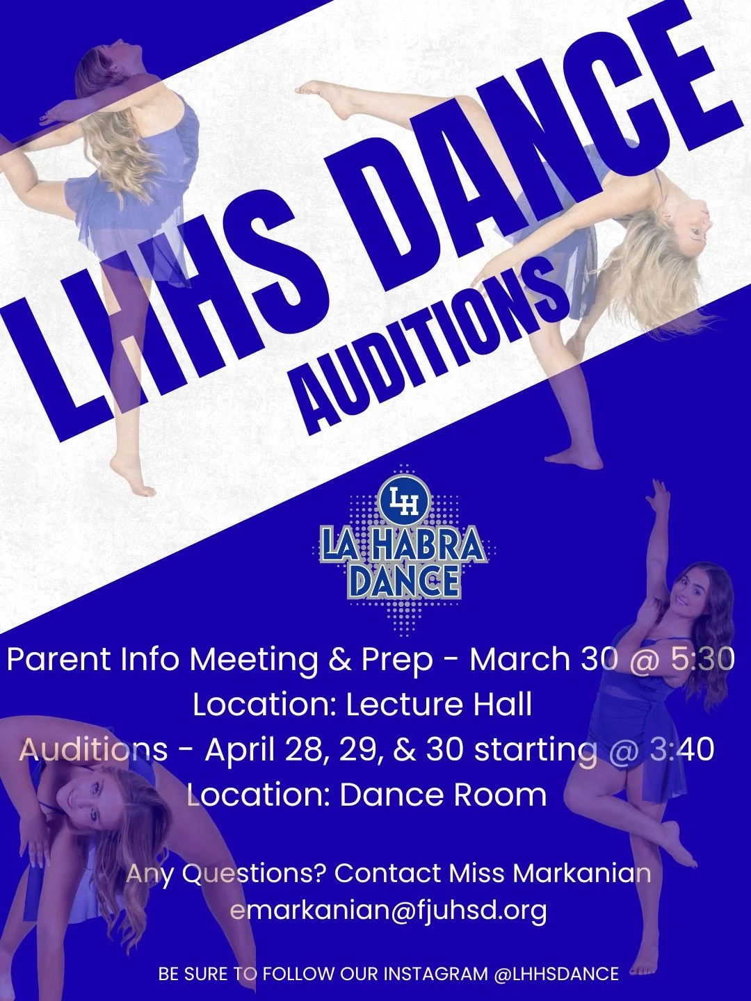 The La Habra High School Dance Program provides students the opportunity to explore a variety of dance styles, including hip hop, contemporary, jazz, and performance dance. Through choreography and multiple performances throughout the year, students showcase their creativity and passion while growing artistically and developing discipline, teamwork, and leadership skills both on and off the stage.